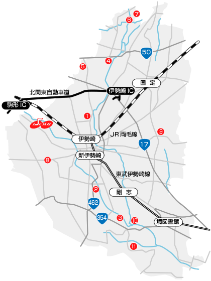 国指定史跡「女堀」の中に、約25,000株の花しょうぶが咲き乱れる、伊勢崎の花の名所です。
