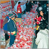 テンポの速いお囃子とサルサの軽快なリズム、御神輿をかつぐ人たちの威勢のいい掛け声と粋なハッピ姿が印象的です。