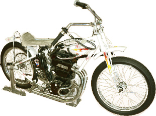 エンジン、三角タイヤも専用に開発されたものを使用、軽量化をはかるために計器類やアクセサリーは一切なく、ブレーキもありません。